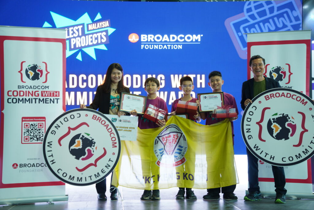A team of three innovative students from SJKC Keng Koon, Pulau Pinang, Malaysia - Sam Xi Ming, Tan